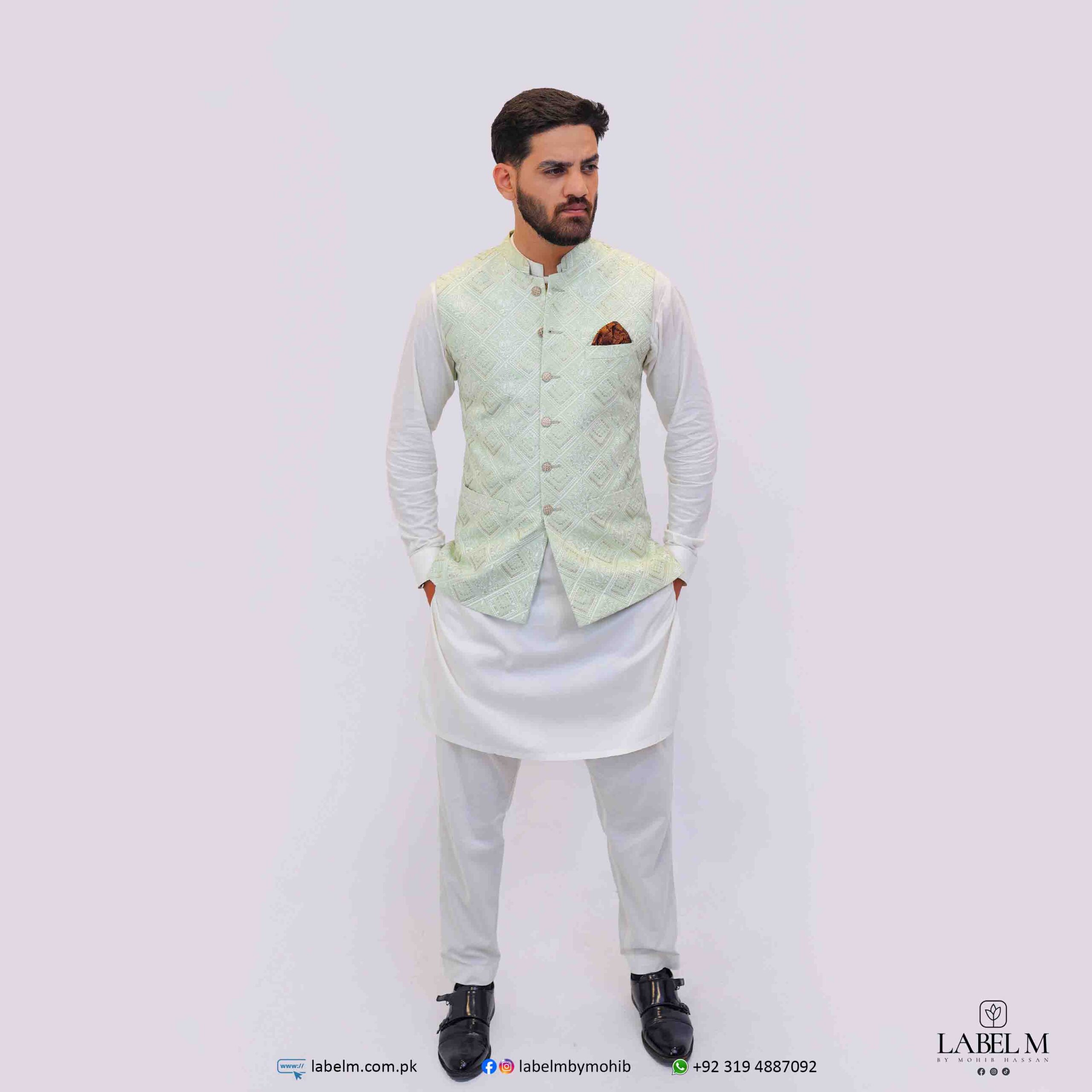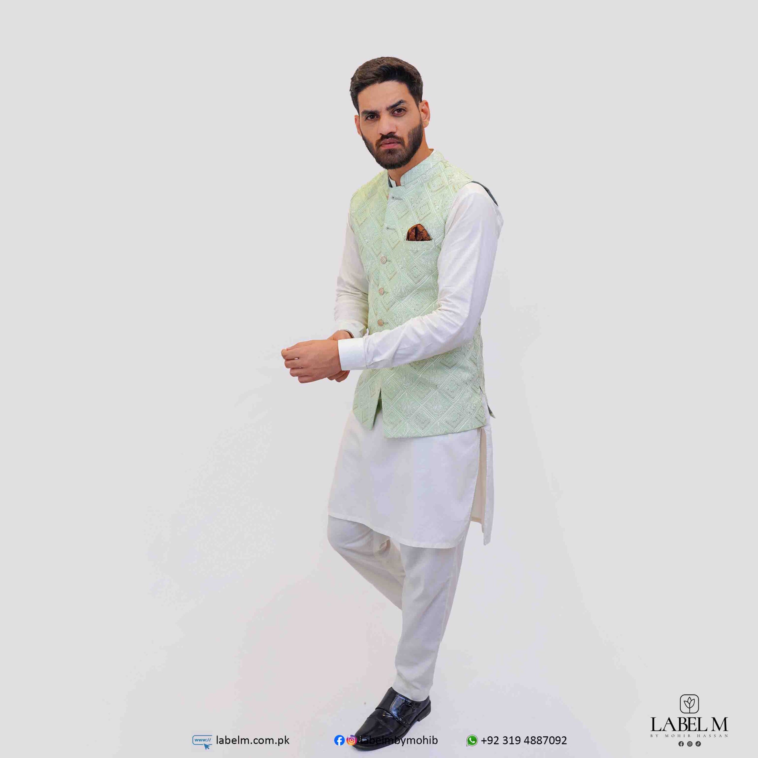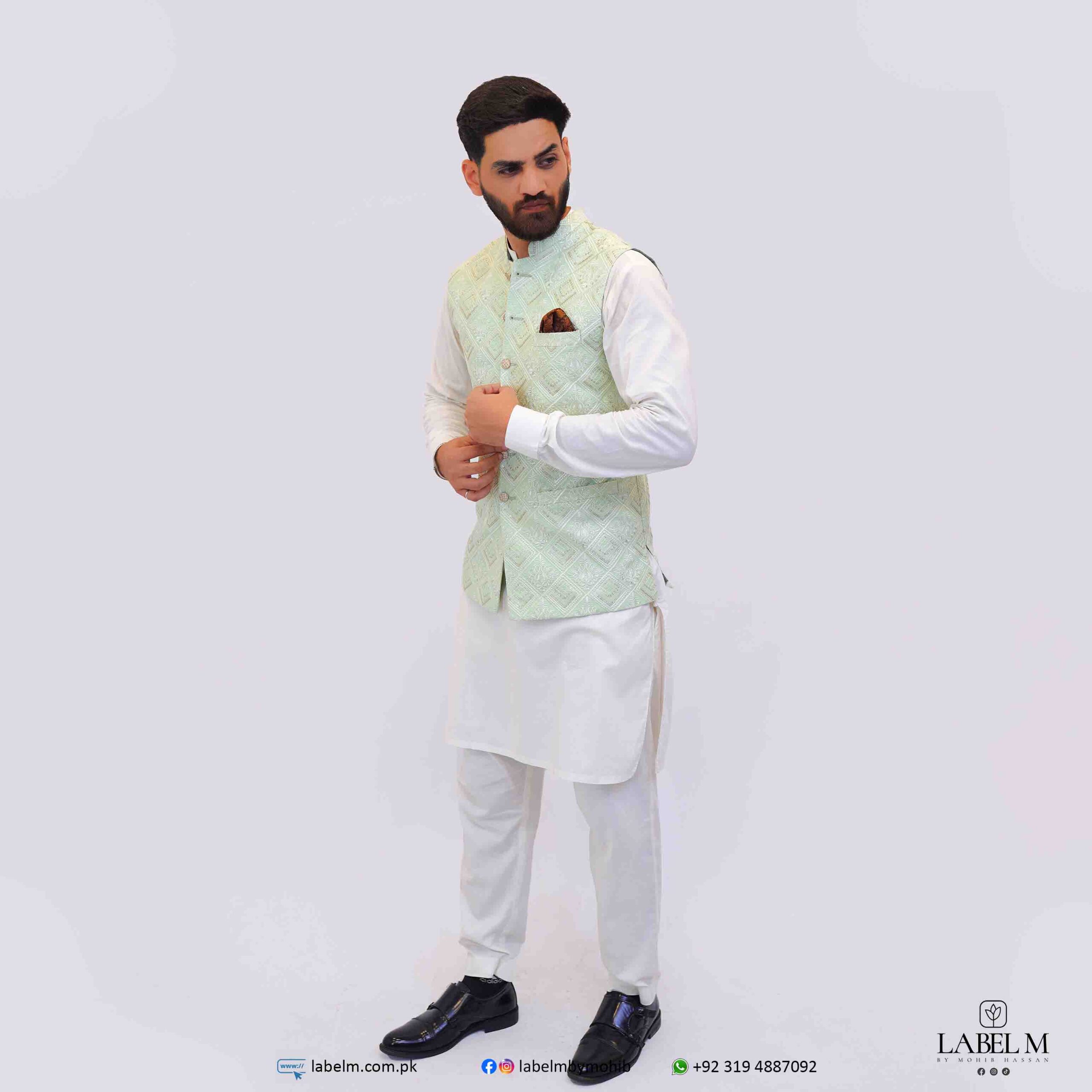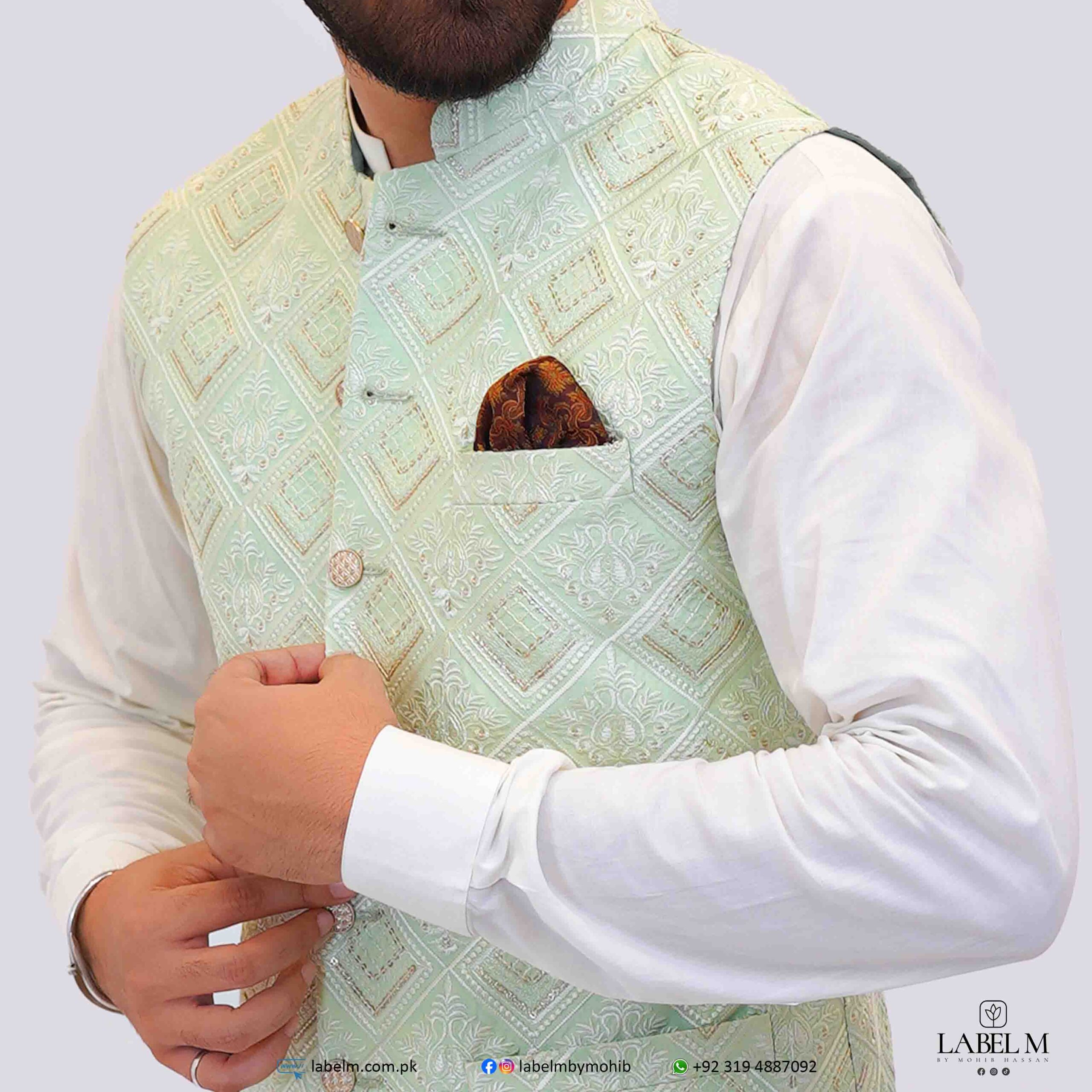 Whether you’re attending a wedding, a festive celebration, or a formal event, this Beryl Green Embroidered Fabric Waistcoat is a versatile choice that will effortlessly enhance your attire