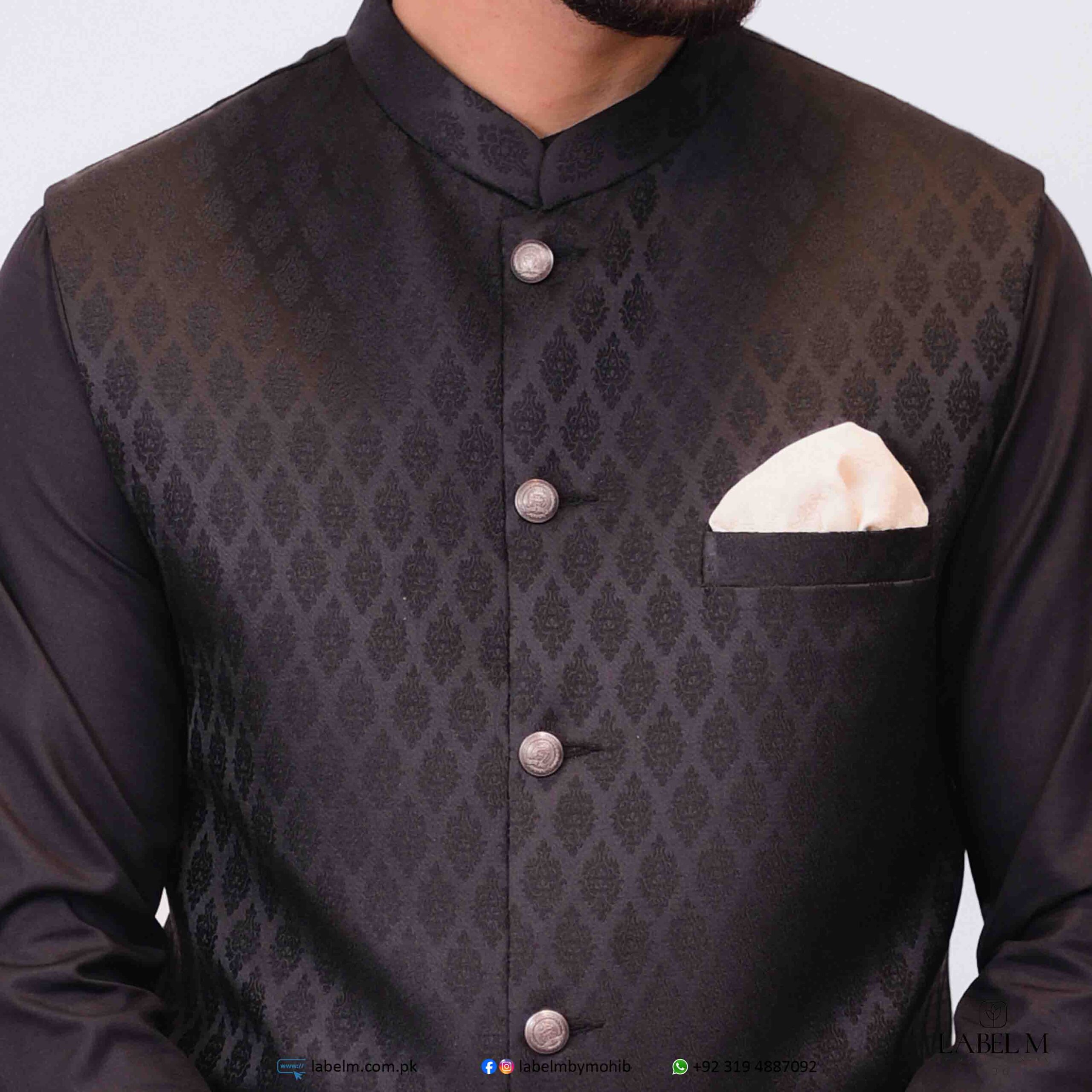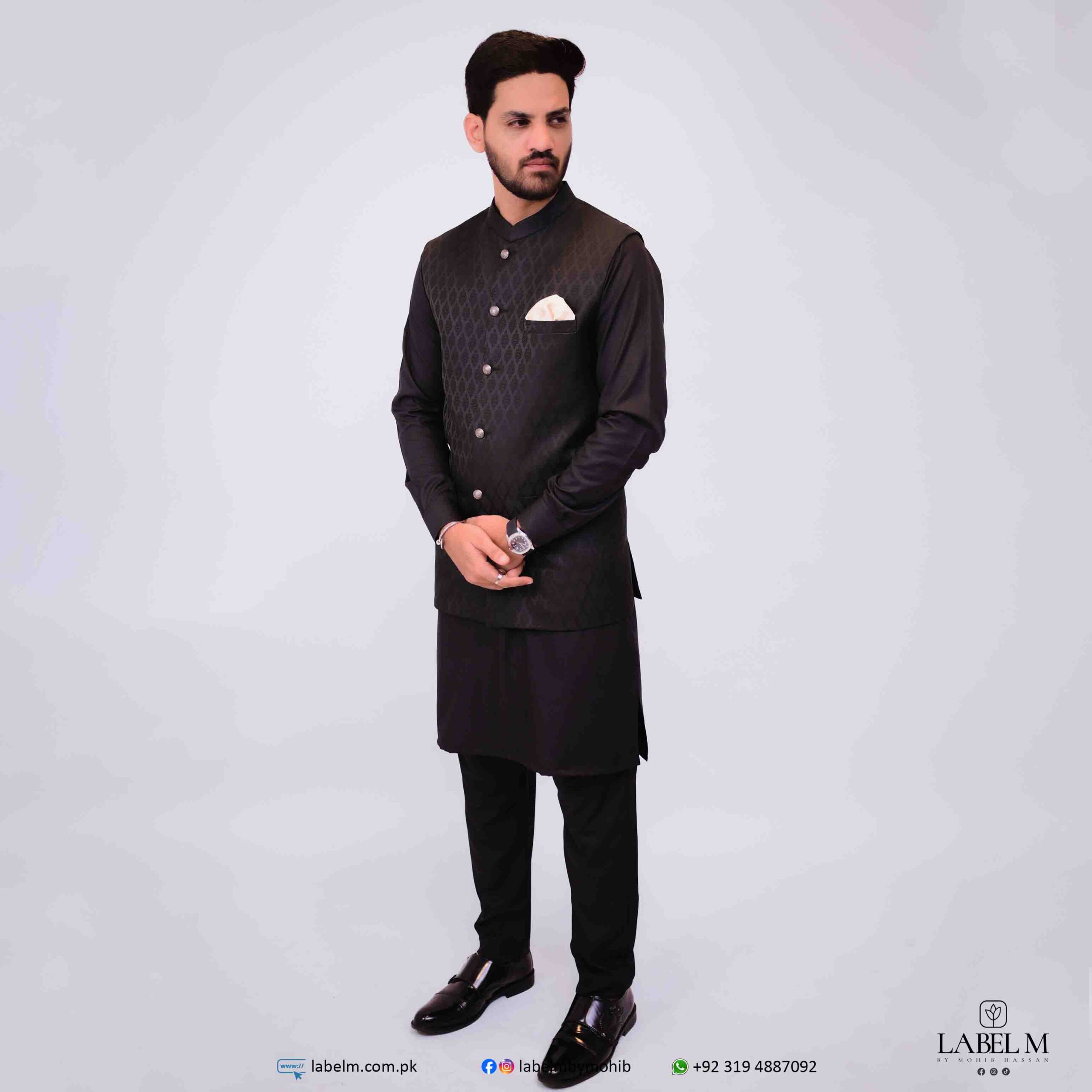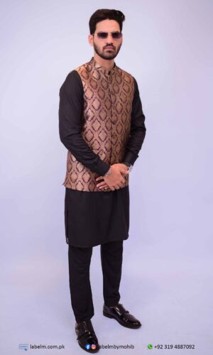 Add a touch of elegance and personality to your wardrobe with our black jamawar waistcoat. Perfect for both formal and casual occasions, this waistcoat is a timeless piece that will elevate your look. Stand out from the crowd and exude confidence with this stylish and sophisticated waistcoat.
