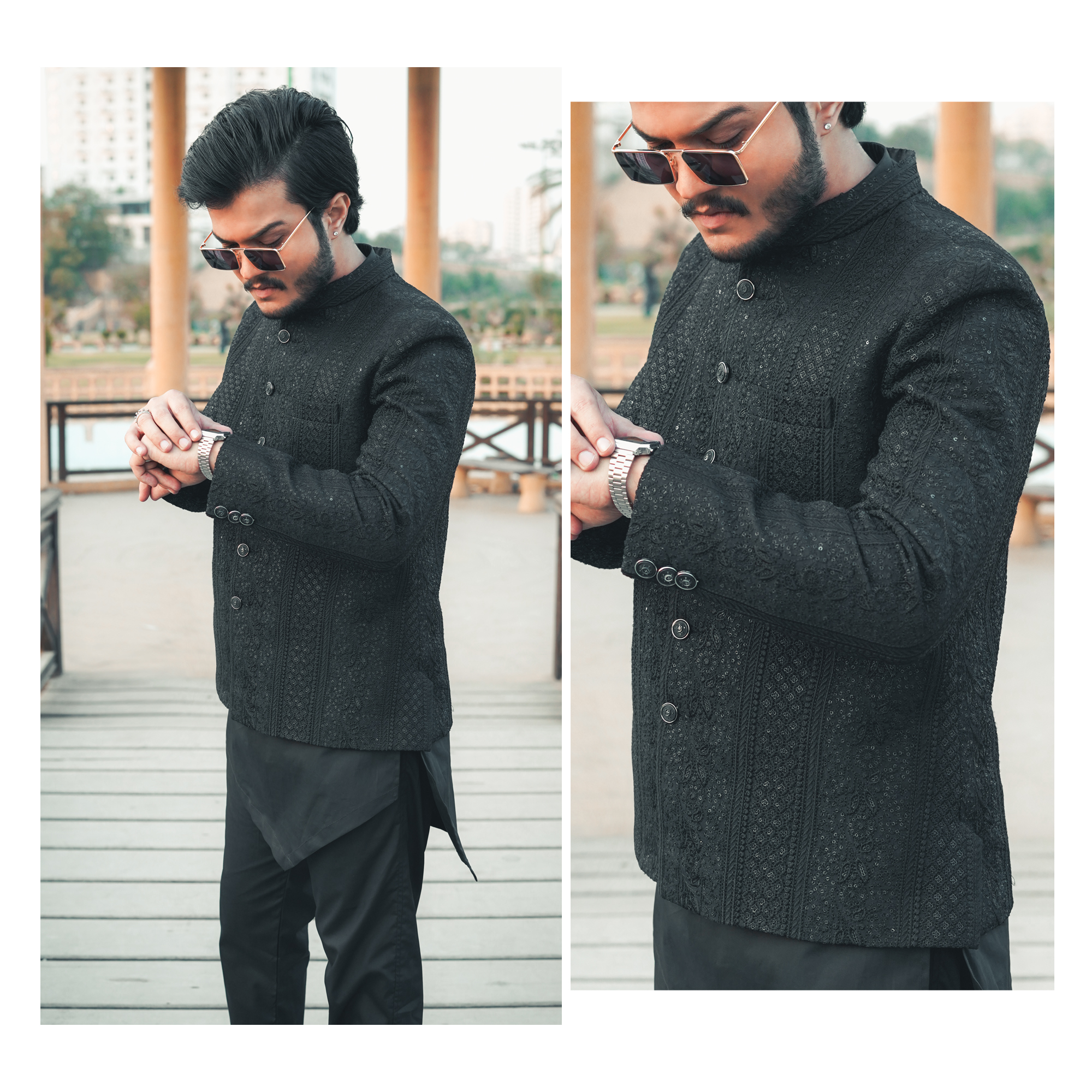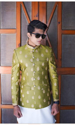 Black Raw Silk with Black Embroidered Sequence Work Prince Coat